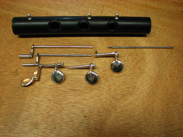 All parts separate, the Low C push is soft soldered onto the steel rod. Low B is not soldered together yet.