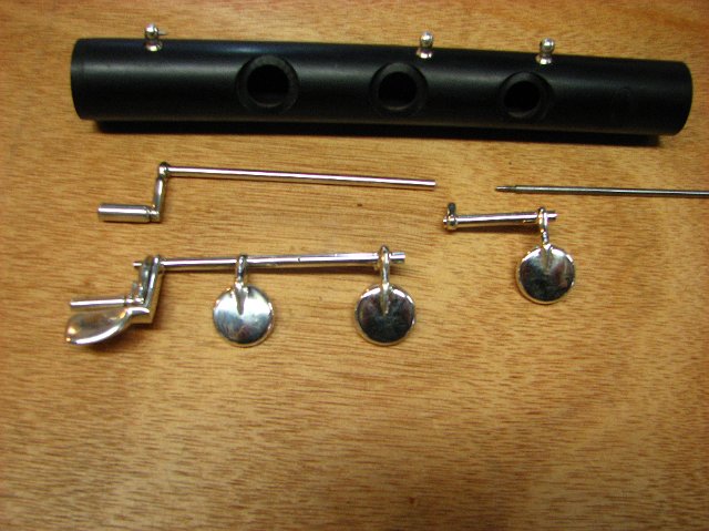 Low C# and C are now assembled on the same rod, Low C push is soldered onto the rod and Low D key is fixed to the rod with steel pins.